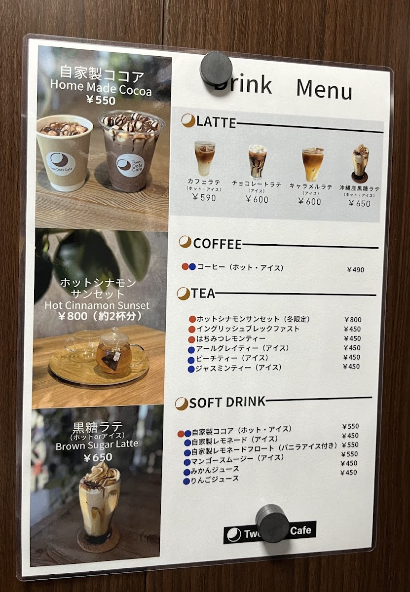 The menu showcases delightful offerings, notably the 黒糖ラテ (Brown Sugar Latte) that marries the rich notes of espresso with the natural sweetness of brown sugar, topped with fluffy whipped cream. A must-try is the innovative タコライス wrapped in a 22cm tortilla, satisfying those who crave a taste of both tacos and taco rice.